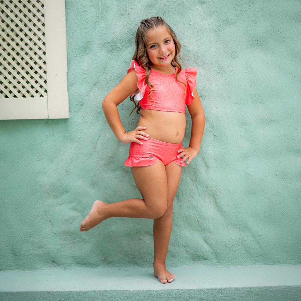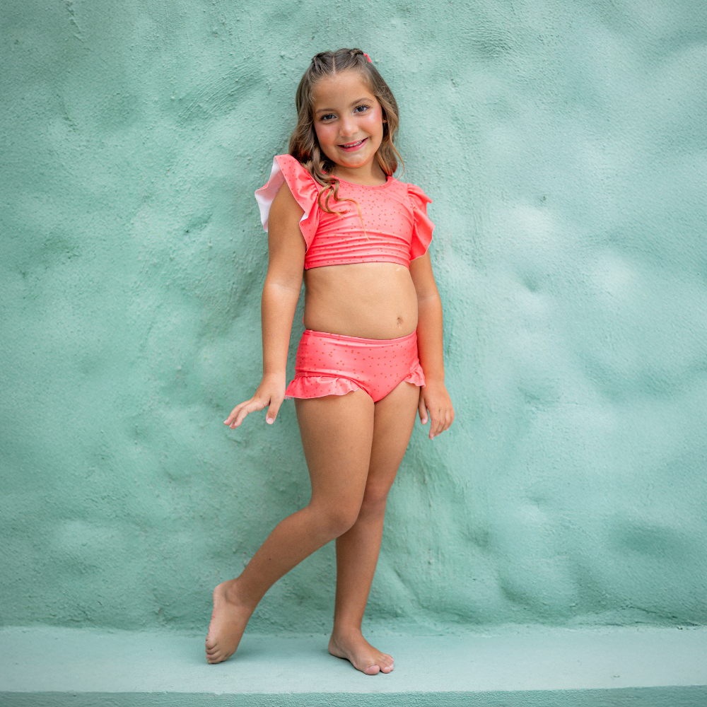 Nosso queridinho: Biquíni Babado Poá. Com modelagem linda, tecido com proteção UV 50+, forro em toda a peça, ele possui calcinha com babadinho na lateral, e top cropped com amarração nas costas, trazendo ainda babadinho no ombro, como detalhe de puro charme! É um biquíni cheio de estilo, super prático e versátil!