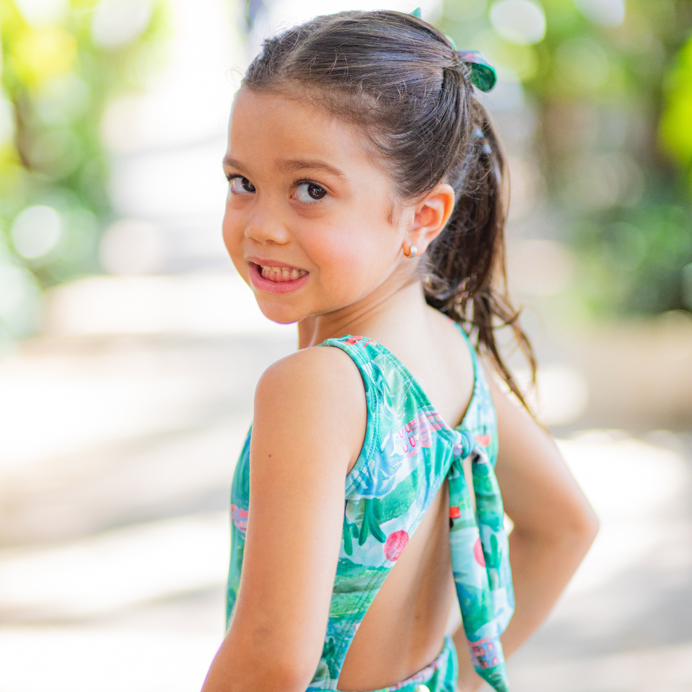 O Maiô Nó Veraneio é confeccionado pensando no extremo conforto das crianças. Com modelagem linda, possui decote arredondado nas costas, com detalhe de nozinho que garante o ajuste ideal, deixando a peça super confortável. Possui calcinha com babadinho na lateral que é puro charme! É um maiô prático e lindo!