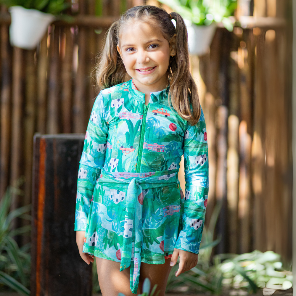 O Maiô Zíper Veraneio é confeccionado pensando no extremo conforto das crianças. Com modelagem linda, possui mangas compridas que garantem maior proteção para as brincadeiras ao sol e zíper frontal que facilita na hora de vestir a peça! É um maiô prático, lindo e cheio de personalidade!
