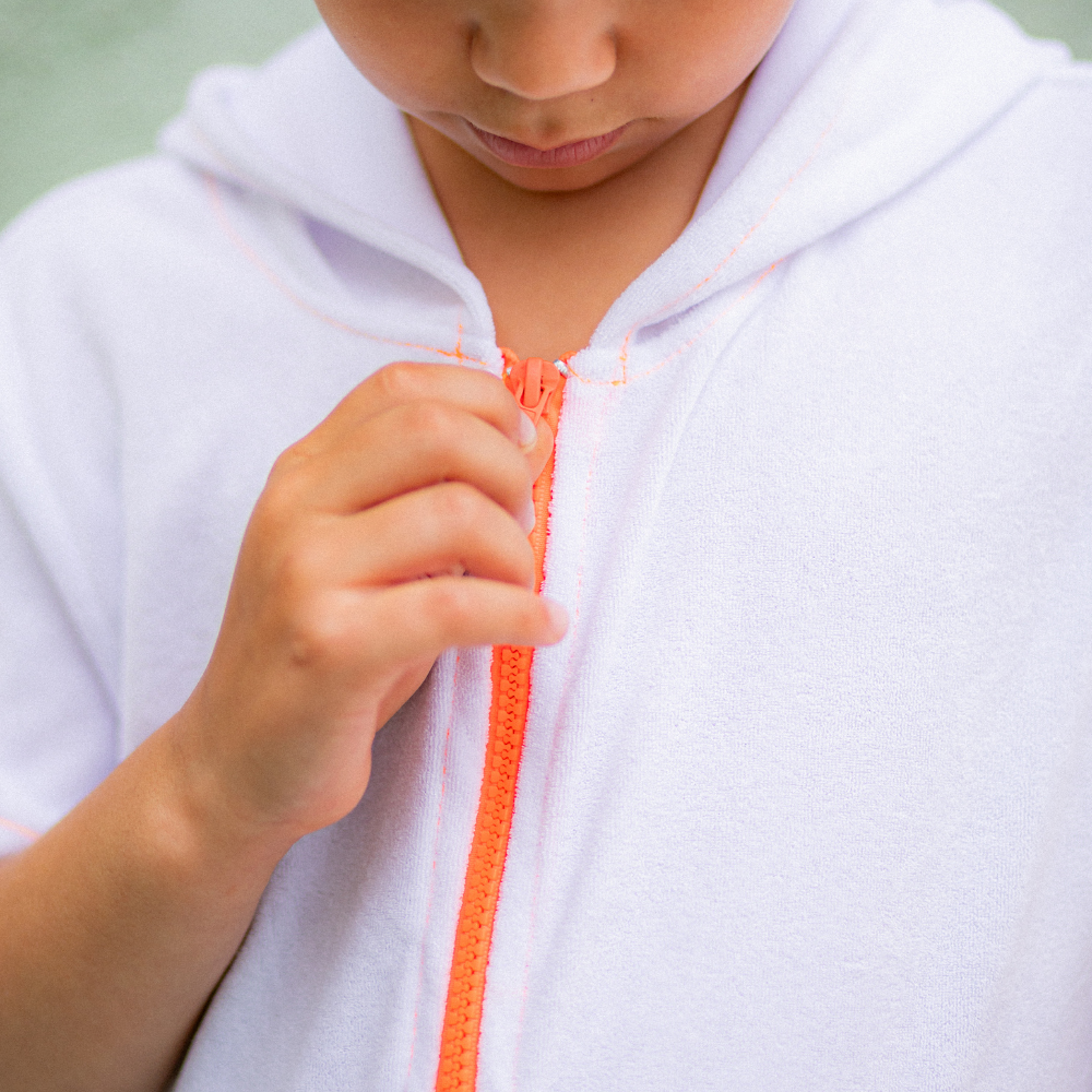 Um dos sucessos da AniMar: o nosso Roupão Zíper com tecido atoalhado e com zípet tratorado! Com bolsinhos e capuz, ele é a peça perfeita para acompanhar as crianças na praia ou piscina! Pode ser usado como saída de praia também! E o melhor, ele é para meninos e meninas! Tamanho PP: 1 a 3 anos, Tamanho P: 4 a 5 anos, Tamanho M: 6 a 7 anos, Tamanho G: 8 a 10 anos.