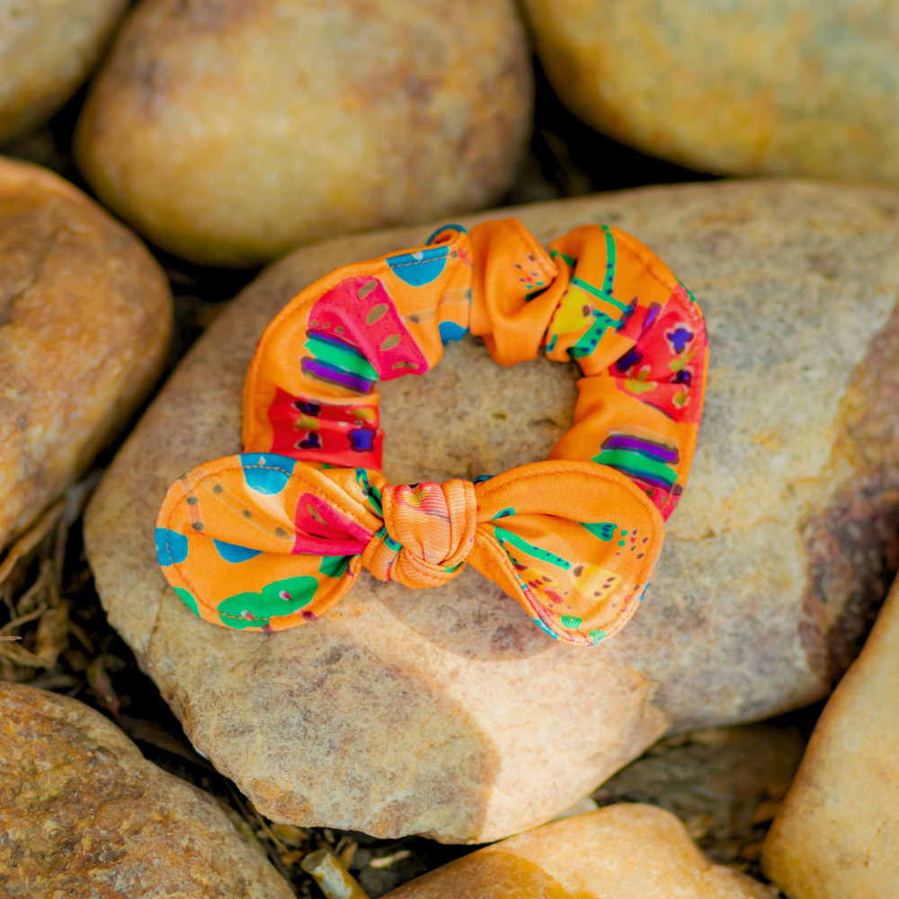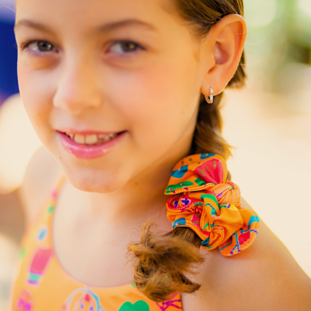 A Scrunchie Sol de Jarros é confeccionada para trazer mais estilo ao look. Finaliza aquele lindo rabo-de-cavalo ou coque despretensioso para curtir o dia de diversão!