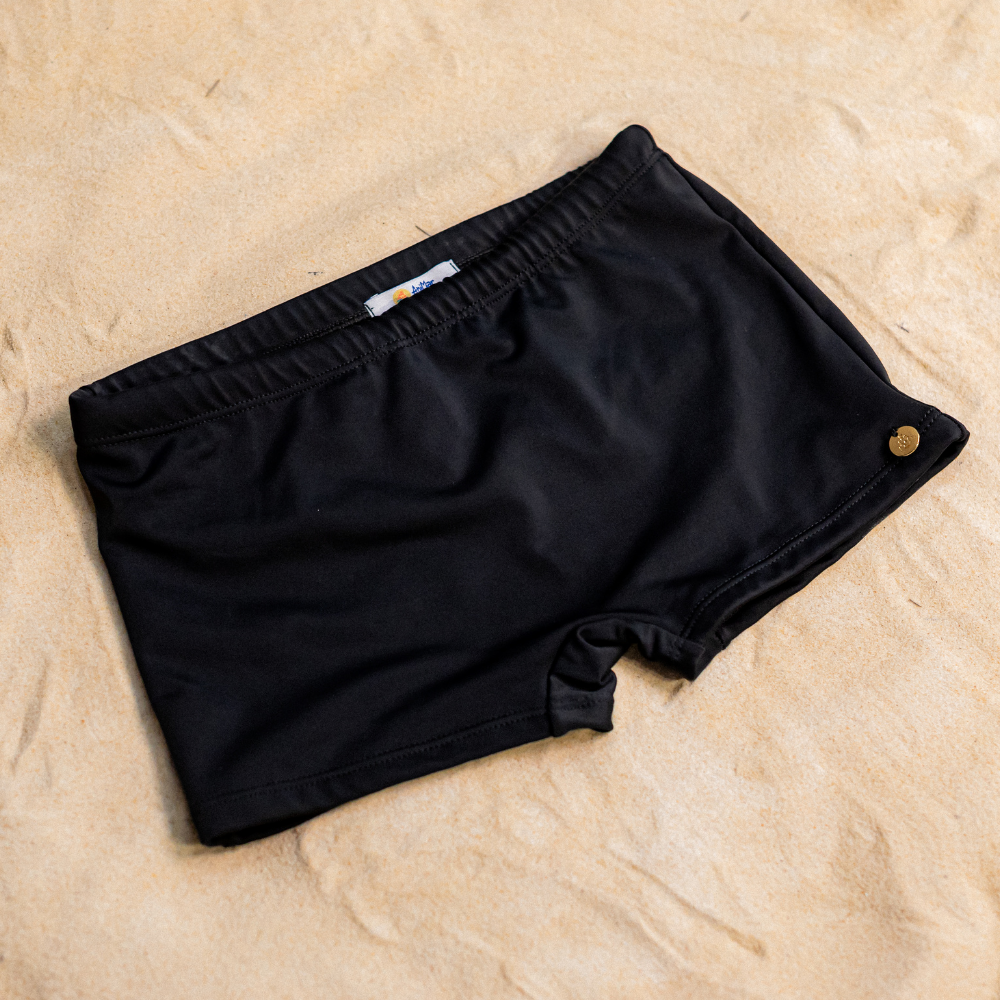 A Sunga Preta é confeccionada no nosso tecido poliamida com proteção UV 50+ pensando no extremo conforto das crianças. Com modelagem shortinho, possui cordão interno para ajuste na cintura e é 100% forrada! É a peça perfeita para se divertir com estilo e liberdade! Por ser lisa, combina facilmente com qualquer cor de camisa de proteção uv.