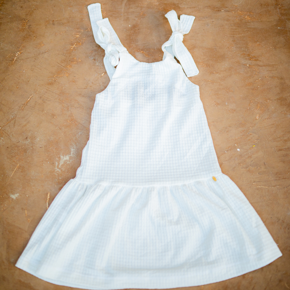 Novidade na AniMar: vestido para as meninas! Com tecido de algodão waffle, saia rodadinha e alças que são finalizadas com lindos laços para o ajuste ideal. Ainda possui elástico nas costas para um maior conforto. Veste nossas meninas do 04 anos ao 10 anos!